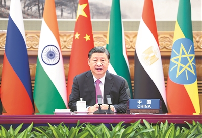 习近平强调,金砖合作机制是新兴市场国家和发展中国家加强团结合作、维护共同利益的重要平台。今天,我们就巴以问题协调立场、采取行动,为扩员后的“大金砖合作”开了个好头。中方愿同其他成员一道,开创金砖合作新时代。