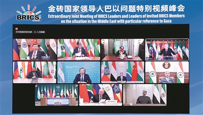 习近平指出,本次峰会是金砖扩员后的首场领导人会晤。当前形势下,金砖国家就巴以问题发出正义之声、和平之声,非常及时、非常必要。加沙地区的冲突已持续一个多月,造成大量平民伤亡和人道主义灾难,并出现扩大外溢趋势,中方深表关切。当务之急,一是冲突各方要立即停火止战,停止一切针对平民的暴力和袭击,释放被扣押平民,避免更为严重的生灵涂炭。二是要保障人道主义救援通道安全畅通,向加沙民众提供更多人道主义援助,停止强制迁移、断水断电断油等针对加沙民众的集体惩罚。三是国际社会要拿出实际举措,防止冲突扩大、影响整个中东地区稳定。各方应该将联合国大会和安理会有关决议要求落到实处。