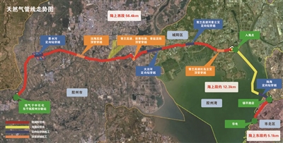 据悉,青岛市胶州湾海底天然气管线陆地段约60公里,下穿胶州湾海底段约12公里,自中石化东干线胶州分输站起,途经胶州市、城阳区,从女姑口大桥西入海,经镇平路调压站上岸后,与市区“三横四纵”次高压燃气管线对接,并向南延伸至华电青岛发电厂。
