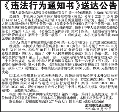 《违法行为通知书》送达公告