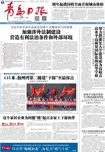 | 青岛日报社(集团)数字报纸(包括《青岛日报》、《青岛早报》、《青岛晚报》、《老年生活报》)的一切内容(包括但不限于文字、图片、PDF、图表、标志、标识、商标、版面设计、专栏目录与名称、内容分类标准以及为读者提供的任何信息)仅供青岛日报社(集团)读者阅读、学习研究使用,未经青岛日报社(集团)及相关权利人书面授权,任何单位及个人不得将青岛日报社(集团)数字报纸(包括《青岛日报》、《青岛早报》、《青岛晚报》、《老年生活报》)所登载、发布的内容用于商业性目的,包括但不限于转载、复制、发行、制作光盘、数据库、触摸展示等行为方式,或将之在非本站所属的服务器上作镜像。否则,青岛日报社(集团)将采取包括但不限于网上公示、向有关部门举报、诉讼等一切合法手段,追究侵权者的法律责任。 |