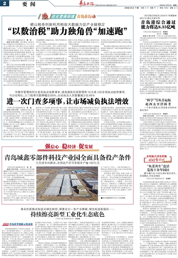 本报12月3日讯 歌尔微电子股份有限公司是崂山区的独角兽企业,今年1至10月,公司营业收入同比增长19.72%,利润总额同比增长100%。“公司生产微系统模组用的集成电路种类较多,有的门类比较小众,经常会面临原材料采购的困难,税务部门运用税收大数据,既帮企业链接了上下游资源,又量身定制个性化税费优惠套餐,让我们研发投入、投产更有底气。”谈及企业的强劲增长,公司副总经理、董秘贾阳认为这是原因之一。