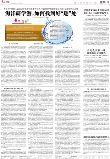 激活消费市场。截至目前,全市经认定的市级以上研学旅游基地达150余家,研学旅游示范基地(营地)27家,打造了海信探索中心、海尔家电博物馆、明月海藻世界等网红研学旅游打卡地;整合串联中国水准零点景区、青岛海昌极地海洋公园、青岛贝壳博物馆等29个景区景点,推出8大海洋研学旅游主题线路。与此同时,海洋研学旅游纳入青岛市文旅惠民消费活动,市民游客参与海洋研学旅游的积极性显著提高。