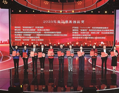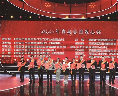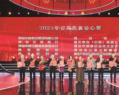 经过组织评选,海尔集团公司等10家单位获得“2023年青岛慈善十佳”荣誉称号;黄岛区“幸福来敲门”关爱项目等11个项目获得“2023年青岛慈善创新奖”;青岛经济技术开发区慈善总会等17家单位(个人)获得“2023年青岛慈善工作奖”;青岛华商投资集团有限公司等21个团队(个人)获得“青岛慈善爱心奖”。