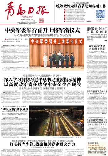 | 青岛日报社(集团)数字报纸(包括《青岛日报》、《青岛早报》、《青岛晚报》、《老年生活报》)的一切内容(包括但不限于文字、图片、PDF、图表、标志、标识、商标、版面设计、专栏目录与名称、内容分类标准以及为读者提供的任何信息)仅供青岛日报社(集团)读者阅读、学习研究使用,未经青岛日报社(集团)及相关权利人书面授权,任何单位及个人不得将青岛日报社(集团)数字报纸(包括《青岛日报》、《青岛早报》、《青岛晚报》、《老年生活报》)所登载、发布的内容用于商业性目的,包括但不限于转载、复制、发行、制作光盘、数据库、触摸展示等行为方式,或将之在非本站所属的服务器上作镜像。否则,青岛日报社(集团)将采取包括但不限于网上公示、向有关部门举报、诉讼等一切合法手段,追究侵权者的法律责任。 |