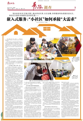 统计显示,中国有65%以上的人口生活在城市,社区是城市居民主要的生活范围。在青岛,应该如何推进社区嵌入式服务设施建设?