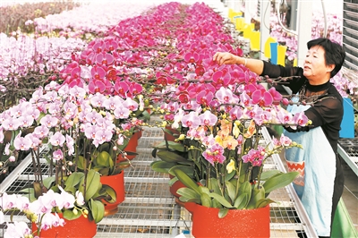 | ■左图:眼下,即墨区灵山街道花卉大棚里一片繁忙,种植户忙着管护和外销花卉。近年来,即墨区灵山街道大力发展蝴蝶兰、仙客来等多个品种的特色花卉种植。图为1月7日,一位花农在管护花卉。