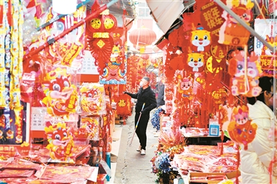 | ■青岛街头年味渐浓。在利津路小商品批发市场,龙年的各种装饰物已经上架,营造出喜庆的节日氛围。 于 滈 摄 |