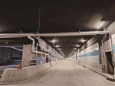 青岛国际邮轮港区启动区地下空间7.3公顷,总建筑面积21.8万平方米,项目共分四层,规划公共停车场、隧道、地下环路、商业步行街、旅客集散地等多个业态,车位近4000个。“地下空间内部装修分为两大板块,主要涉及地面铺装、消防、通风、管道铺设,以及监控、机电、照明等应用设备安装。其中,车库部分进展相对较快,工程接近尾声;商业部分因涉及和地上市政设施对接、出入口建筑衔接等问题,正全速推进,目前正在建设地上土建管廊,预计春节后铺设管线。”青岛环海湾开发建设公司总工赵明杰告诉记者,目前每天有近600人奋战在一线,预计2024年6月基本完工。