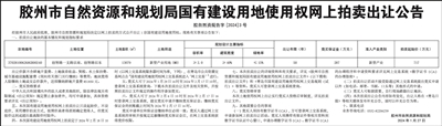 胶州市自然资源和规划局国有建设用地使用权网上拍卖出让公告