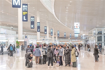 春运期间,青岛机场预计航班量2.06万架次、旅客吞吐量269.6万人次,较2023年日均航班增长40.1%、旅客量增长64.8%。春运首日,机场起降航班540余架次,旅客量约7万人次。