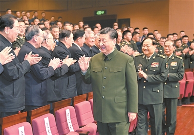 下午4时许,习近平来到老同志中间,全场响起热烈掌声。习近平关切询问他们的身体和生活情况,共同回顾在党的二十大精神指引下,过去一年来党、国家、军队事业取得的重大成就。老同志们一致表示,要更加紧密地团结在以习近平同志为核心的党中央周围,坚持以习近平新时代中国特色社会主义思想为指导,深入贯彻习近平强军思想,深刻领悟“两个确立”的决定性意义,增强“四个意识”、坚定“四个自信”、做到“两个维护”,贯彻军委主席负责制,坚定信心,振奋精神,团结奋进,为打好实现建军一百年奋斗目标攻坚战,为以中国式现代化全面推进强国建设、民族复兴伟业作出新的贡献。