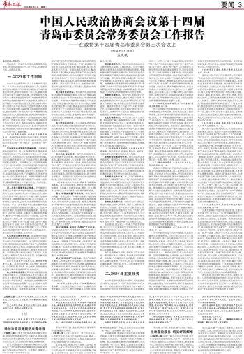 ~~~——在政协第十四届青岛市委员会第三次会议上 (2024年1月28日) 孟庆斌