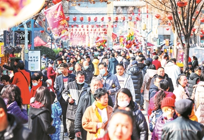 正月里,一些文化情感被倏然唤醒。天后宫的新正民俗文化庙会吸引着全家老少一起出动,非遗手工体验、传统民间游戏、新年祈福等特色活动尽显中华优秀传统文化的深厚底蕴与无穷魅力;即墨古城内一盏盏红灯笼高高挂起,游人或是鸣钟祈福辞旧迎新,或是从地方戏曲的传唱中感受文化生命体的饱满厚重。