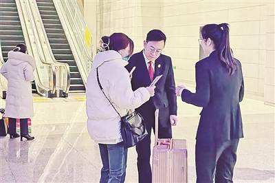 ■黄岛法院铁山法庭的干警近日来到青岛西站开展志愿服务活动,向来往群众宣传雷锋精神,提供引导服务,并围绕劳动者权益保障、妇女儿童保护等进行普法宣传,解答相关法律问题。