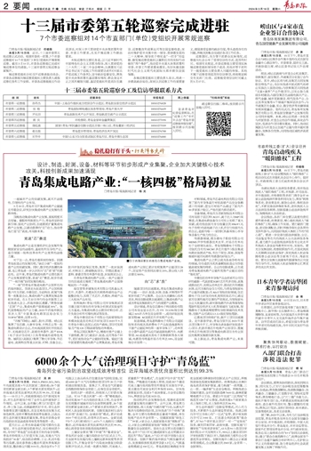随着项目的加速落地,青岛在集成电路全产业链——设计、制造、封测、设备、材料等环节初步形成了产业集聚。企业加大关键核心技术攻关,科技创新成果加速涌现,让集成电路产业成为青岛发展新质生产力的重要产业载体。