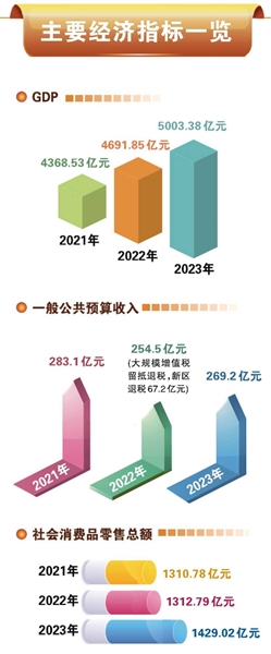 获批设立以来,新区地区生产总值从2013年的2121亿元增长到2023年的5003.38亿元、成为全省第一个GDP迈过5000亿元大关的城区,稳居19个国家级新区第三;从超过省内3个地市到超越10个地市,占全省经济总量比重由3.9%提升至5.4%;获得国家推进质量工作成效突出先进区等100余项国家级荣誉。