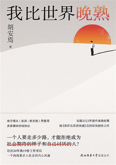 豆瓣2023年度图书《我在北京送快递》的作者胡安焉出新作了,在这部名为《我比世界晚熟》的自传中,他尝试从自己的心理状态、性格、观念等精神内容出发,去追问“我何以成为今天的我”。