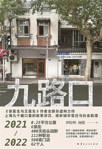 2024年春天,非虚构畅销书《张医生,王医生》的作者、媒体人伊险峰和杨樱也在以自己的非虚构方式回望上海这座城市,他们用一年的时间,从长乐路和襄阳北路的路口开始,跨越9 个路口,111 种职业,580 家门店,62 个人。英姐的公路商店、小李水果店、范阿姨的服装店、高松的为民门窗店、卖煎饼果子配咖啡的网红店……社会网络、商业生态、城市逻辑、文明肌理,上海社会的聚与散,依次展开,《九路口》饱含个体的情感,理性的思考,所有的观察和分析都指向下述追问——文明对于城市和普通人的意义是什么?