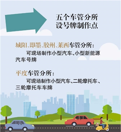 车管分所号牌制作点的设立,使企业和个人办理车辆挂牌业务更加快捷和便利。需要注意的是,城阳、即墨、胶州、莱西车管分所均可在现场制作小型汽车、小型新能源汽车号牌;平度车管分所只能现场制作小型汽车、二轮摩托车、三轮摩托车车牌。下一步,市车管所将继续在五个分所增加现场制作的号牌种类,并在全市有条件的车管分所增设号牌制作点,方便企业、个人车辆登记业务“即来即办”。