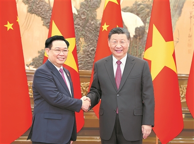 4月8日,国家主席习近平在北京人民大会堂会见越南国会主席王庭惠。 新华社照片