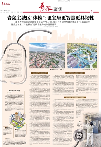 ~~~率先在市南区江苏路街道启动住房、小区、街区三个维度的城市体检工作,年内计划覆盖主城区,“体检报告”将精准服务城市更新建设