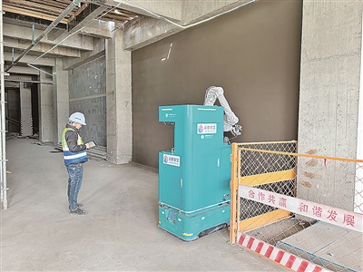 此外,在青岛建设工地内还有多个“机器人工友”的身影,比如喷涂机器人、整平机器人、抹平机器人、放样机器人等等。以抹平机器人为例,相对于人工,机器人的施工效率可提高30%以上,对混凝土地面的平整精准度误差可以控制在5毫米以内。