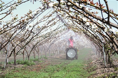地枪施肥机能够“一键完成”地枪深入地下对根系施肥,解决了人工施肥既费力又难以深入根茎部分的问题;风送弥雾打药机每小时喷洒面积可达5亩以上,作业效率较传统打药机可提高5倍以上……日庄镇恒岳丰开心家庭农场示范基地是一处现代化标准果园,4月16日,20余款果园生产装备围绕果园耕整地、施肥、植保、除草、枝条粉碎等机械化作业关键环节在此演示推介,让记者感受到了果园机械化的“实力”。