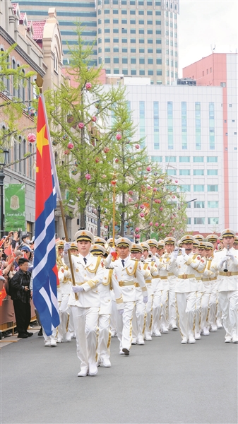 本报4月20日讯 20日上午,海军军乐团在海军博物馆、广兴里、中山路与肥城路路口先后进行三场精彩的行进乐表演,吸引众多市民游客观看。