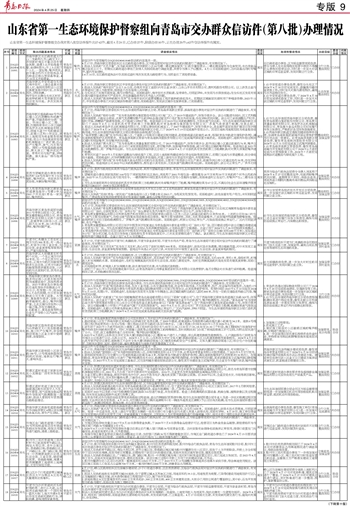 山东省第一生态环境保护督察组向青岛市交办群众信访件(第八批)办理情况