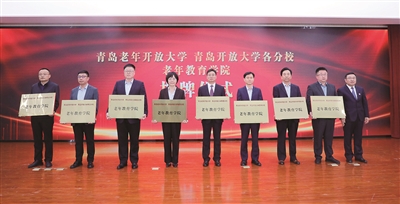 国家老年大学青岛分部揭牌仪式上,青岛老年开放大学“青岛市军休大学老年教育学院”“李沧区九水街道老年教育学校”同步揭牌成立,同时,为莱西、胶州、城阳、李沧、崂山、平度、即墨、黄岛8个区市的青岛开放大学分校授牌“青岛老年开放大学老年教育学院”。至此,全市老年大学办学体系更加完善,学习型城市网络更加健全。