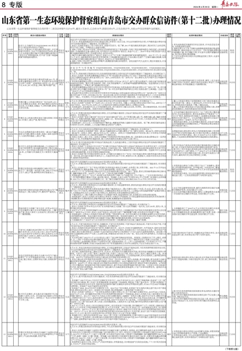 山东省第一生态环境保护督察组向青岛市交办群众信访件(第十二批)办理情况