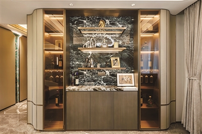 “意式东方”风格为整个样板间撑起强大气场和底蕴,产品的细节控制也不在话下,随便抓几个细节,就足以让青岛买房人叹服:比如,客餐厅厨房地面的瓷砖,用的是1.8×0.9米超大尺寸,多数楼盘采用的是1.2×0.6米;只有0.5毫米的极窄缝极限拼贴工艺,且每一块的纹理和纹路都能连接起来,呈现出浑然一体的视觉效果,而多数楼盘采用的是2毫米普通拼贴工艺。在样板间看到的衣柜、酒柜、墙饰、门的木饰面,均采用天然尼斯木饰面、8遍油漆面层工艺,木饰面纹路自然、清透,手感更细腻。