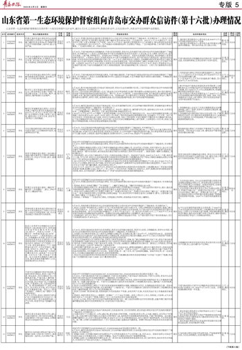 山东省第一生态环境保护督察组向青岛市交办群众信访件(第十六批)办理情况