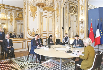 习近平指出,中国始终从战略高度和长远角度看待中欧关系,将欧洲作为中国特色大国外交的重要方向和实现中国式现代化的重要伙伴,希望中法关系、中欧关系相互促进、共同发展。当今世界进入新的动荡变革期,中欧作为两支重要力量,应该坚持伙伴定位,坚持对话合作,深化战略沟通,增进战略互信,凝聚战略共识,开展战略协作,推动中欧关系稳定健康发展,为世界和平和发展不断作出新的贡献。