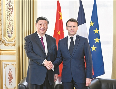 五月的巴黎,风和景明。塞纳河畔,荣军院金色穹顶熠熠生辉,五星红旗和蓝白红三色旗迎风飘扬。