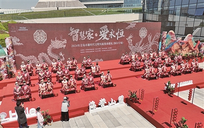 现场,海尔集团董事局主席、首席执行官周云杰为新人贺喜,最美家庭代表为新人送上祝福,活动主承办单位领导共同为新人赠送纪念品,祝福他们举案齐眉、幸福美满。婚礼在新人们优美温馨的歌曲串烧表演中迎来尾声,《繁花》《我是如此相信》等一首首情歌接连唱起,甜蜜的氛围萦绕全场。随后,30对新人及亲友体验了现场的非遗国潮美学市集,领略传统非遗的文化魅力。新人及家属纷纷表示,这场婚礼没有大操大办、没有繁琐流程,但很有创意、有心意、有爱意,让他们不仅体验了中国传统婚礼的深厚文化底蕴和绵延千年的中式浪漫,还践行了文明婚俗新礼仪。