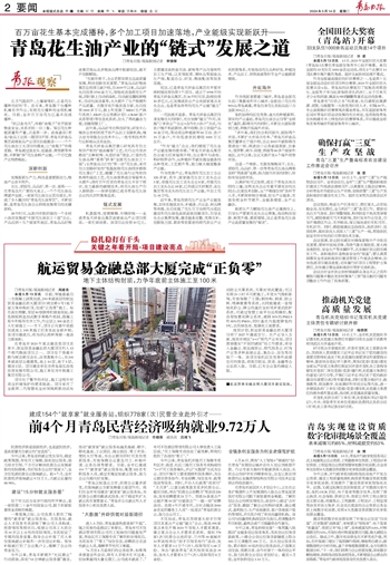 近年来,青岛围绕花生产业全产业链发展,加快实施强龙头、补链条、兴业态、树品牌等举措,先后实施了花生百万亩现代示范区建设和花生绿色高质高效创建项目,引导龙头企业集聚发展,建设链条完整、优势互补、创新能力强、联农带农紧密的现代农业产业化经营体系,有效推动花生品种研发、种植技术、产品加工、销售流通等环节全产业链提质增效。