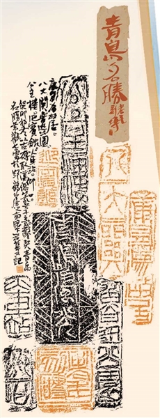 砖刻书法起源于战国时期,兴盛于秦汉魏晋。青岛地区早在秦汉时期就已点燃了文明之火,秦始皇一生三次东巡,立下七处刻石,其中原址位于西海岸新区琅琊镇的琅琊台刻石举世皆知,琅琊刻石成为至今仅存的秦代标准小篆原石,是国家博物馆的镇馆之宝之一,这也是目前青岛地区最早的古代书法遗迹。近代书法家、篆刻家吴昌硕曾如此点评琅琊台石刻:“古泽渊懿,具有典漠训诰遗意……此刻一发千钧,直如麟凤。”近年来,随着砖刻书法文物的大量出土以及专家学者的重视研究,砖刻书法重新回到了公众视野,并成为书法学习的经典范本和珍贵资料。