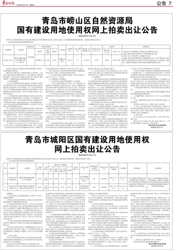 青岛日报 公告 07 2024-05-311 2024年05月31日 星期五