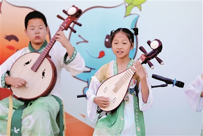 ■青岛重庆路第二小学的学生进行民族乐器表演。 韩 星 摄