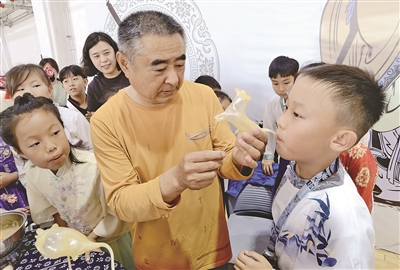■青岛市北区第二实验小学的孩子体验民俗文化。   韩 星 摄