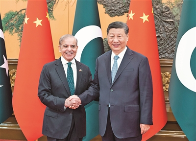 习近平指出,中国和巴基斯坦是山水相连的好邻居、信义相交的好朋友,更是守望相助的好伙伴、患难与共的好兄弟。中巴全天候战略合作伙伴关系不断深化,拥有坚实的民意基础、强大的内生动力、广阔的发展前景。中方愿同巴方坚定相互支持,拉紧合作纽带,深化战略协调,加快构建新时代更加紧密的中巴命运共同体,为地区和平、稳定、发展、繁荣作出更大贡献。