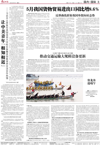 市场布局多元并进。在传统市场方面,前5个月,我国对第一大贸易伙伴东盟进出口2.77万亿元,同比增长10.8%,对欧盟、美国、日本、韩国合计进出口5.91万亿元,增长0.9%、占进出口总值的33.7%。
