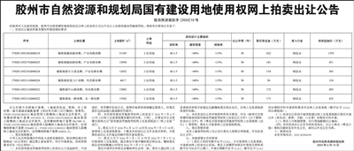 胶州市自然资源和规划局国有建设用地使用权网上拍卖出让公告