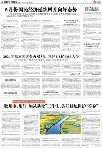 宏观政策效应持续释放。5月份,全国规模以上工业增加值同比增长5.6%,九成地区和八成行业实现增长。服务业生产指数同比增长4.8%,比上个月加快1.3个百分点。