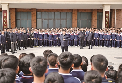 教学楼前广场上,师生们纷纷围拢过来,高声向总书记问好。习近平亲切地对大家说,我到西宁第一站就来看望老师和同学们。上海援建的这所中学,培养来自果洛牧区的各民族孩子,成效明显,意义深远。希望孩子们倍加珍惜这里的良好条件,心怀感恩、好好学习,德智体美劳全面发展,立志成为中国特色社会主义事业的接班人和建设者,努力为自己赢得人生出彩的机会。他祝孩子们学有所成、健康成长。