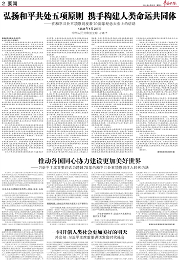 ~~~——在和平共处五项原则发表70周年纪念大会上的讲话 (2024年6月28日) 中华人民共和国主席 习近平
