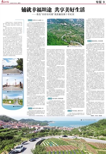 畅安舒美旅游建设,打造漫游交通模式。崂山区打造崂山旅游路、青山进村路等独具特色的山海景一体的滨海旅游线路,形成系列“龙口柳岸”“麦窑慢游”等美丽乡村主题道路;即墨区将22个美丽乡村示范村串珠成线,带动发展莲花优鲜慢生活度假村、“墨上花房”等优质文旅项目,实现村集体年增收260余万元,村民年增收480余万元;胶州市开通朱石路串联艾山风景区,打造融合采摘、农家宴、慢生活等农旅特色路,当地年均客流量增加7万人次;平度市建成旅游大通道项目,改造茶山、大泽山风景区通行条件,实现景区和景点之间互联互通,带动当地葡萄产业发展,经济增长500万元……全市农村公路沿线旅游资源得到了充分挖掘,并不断转化为农村经济新的增长引擎。