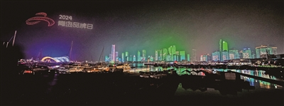 本报7月18日讯 夜幕降临,璀璨的霓虹绵延在浮山湾畔,“青岛品牌日”五个大字缓缓出现在沿海49栋楼宇的玻璃幕墙外;炫彩的灯光映衬下,500架无人机腾空而起,一幅幅动态品牌画卷徐徐展开……7月18日晚,2024青岛品牌日大型展演秀在浮山湾畔震撼上演,为市民游客献上一场视觉盛宴。